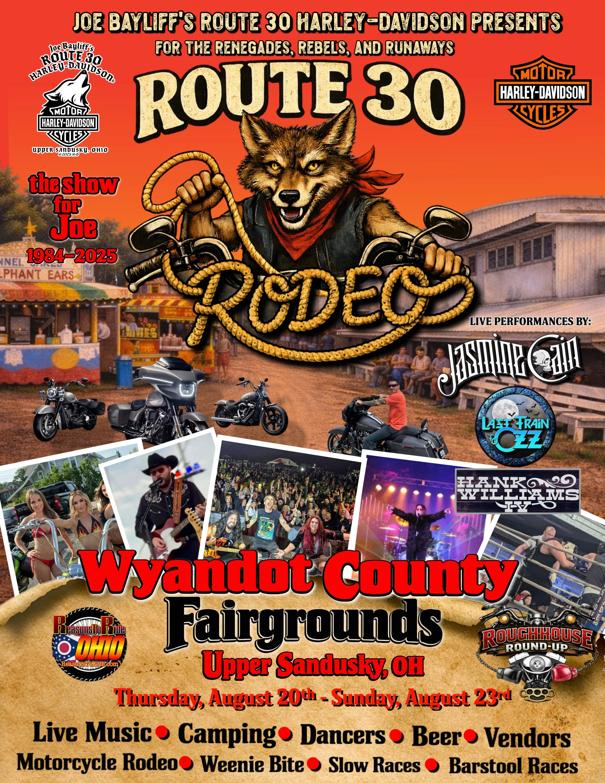 Rev your engines and ride into the ultimate biker homecoming! Four roaring days of camping, arena brawls, and live music that’ll rattle your soul. Pitch your tent, park the camper, grab a cold one, and bang your head to headline acts like Jasmine Cain, Ozzy Tribute, Last Train to Ozz, Hank Williams IV and more. Bring the whole crew — Vendors on-site, food, a bud & beer garden. Be part of huge ride scoping the sights and beauty of our rural Ohio area. Join us Sunday for fellowship, revival, and FREE admission for kids. Whether you ride cruisers, choppers, or sport bikes, there’s something here for every kind of biker. Saddle up and be part of the rally everyone will be talking about. We’re keeping the memory and rowdiness alive in Joe’s honor! We’d love for you to be a part of it!